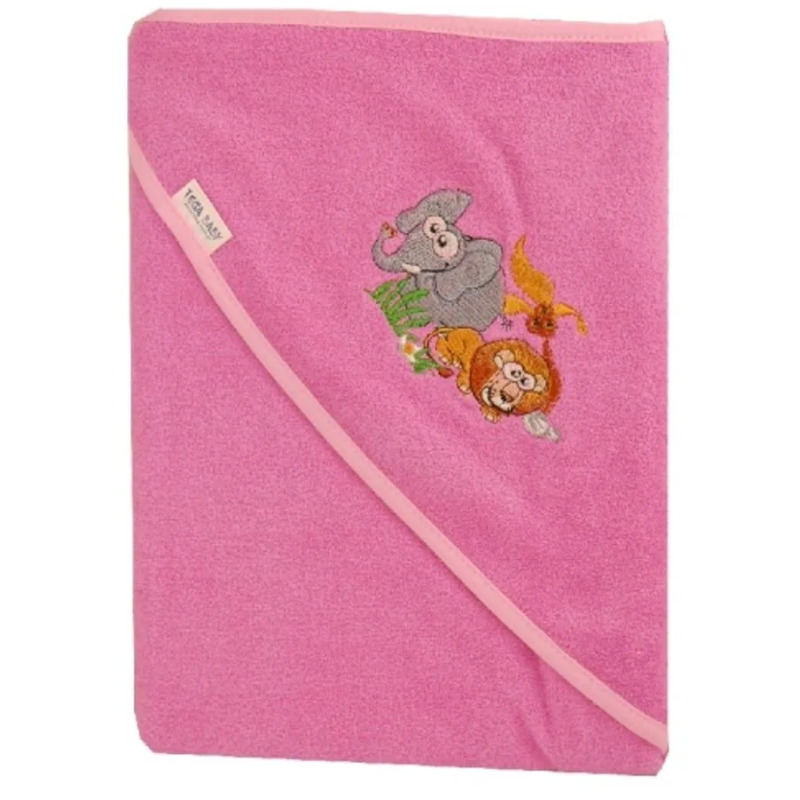 Osuška s kapucí o velkém rozměru 100x100cm z kolekce SAFARI v růžové barvě značky Tega baby. Osuška je vyrobena z kvalitního a silného 100% bavlněného froté, které zaručuje vysokou savost osušky.