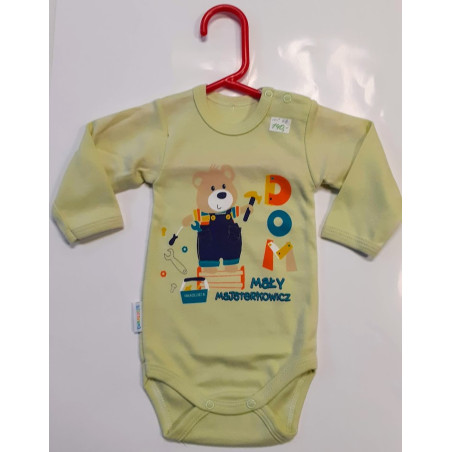 Barvy použité k potisku jsou certifikované a vhodné pro miminka. Je vyrobeno z příjemného a kvalitního materiálu. Body má zapínáni na cvočky na ramínku a mezi nožičkami, což usnadňuje oblékání a přebalování.