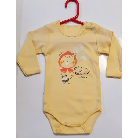 Barvy použité k potisku jsou certifikované a vhodné pro miminka. Je vyrobeno z příjemného a kvalitního materiálu. Body má zapínáni na cvočky na ramínku a mezi nožičkami, což usnadňuje oblékání a přebalování.
