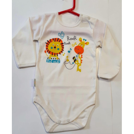 Barvy použité k potisku jsou certifikované a vhodné pro miminka. Je vyrobeno z příjemného a kvalitního materiálu. Body má zapínáni na cvočky na ramínku a mezi nožičkami, což usnadňuje oblékání a přebalování.