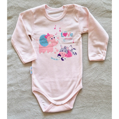 Barvy použité k potisku jsou certifikované a vhodné pro miminka. Je vyrobeno z příjemného a kvalitního materiálu. Body má zapínáni na cvočky na ramínku a mezi nožičkami, což usnadňuje oblékání a přebalování.