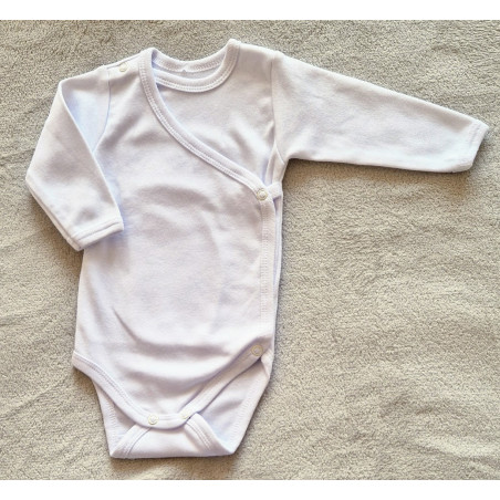 Bavlněné kojenecké body s dlouhým rukávem. Body je čistě bílé bez obrázku.