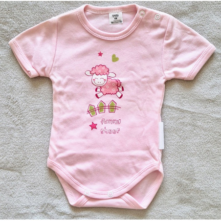 Dětské body s krátkým rukávem, velikost 68 (4-6 měsíců). S obrázkem "OVEČKY".