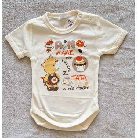 Dětské body s krátkým rukávem, velikost 68 (4-6 měsíců). S obrázkem "Dobrého rána". (Nápis v polštině)