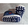Boty z ekokůže pro děti, které ještě nechodí. Vysoké tenisky v modré barvě. Imitace tkaniček - jsou to gumičky.