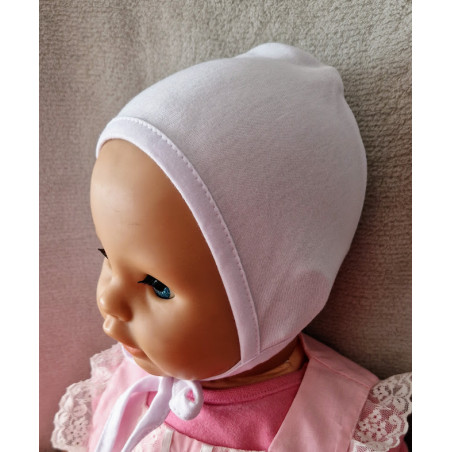 Kojenecká bavlněná čepička pro miminko, je vyrobená z vysoce jemného, 100% bavlněného, atestovaného mako materiálu se zavazováním.