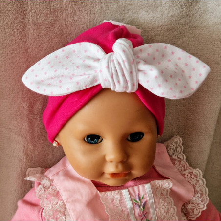 Čepička české značky New Baby For Girls je ušitá ve stylu turbanu. Skvělá vychytávka, kterou lze využít jako krásný doplněk, nebo jako praktický kousek oblečení. Turban zdobí krásný stylový uzel, který dodá čepičce ten správný šmrnc. Ušitá z dvojité látky a tím jsou více chráněny ouška před větrem. Příjemná na dotek a krásně sedí na hlavičce. Materiál: 100% bavlna.