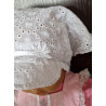Bavlněný šátek s kšiltem. V zadní části má všitý pásek pružného úpletu, který dovolí přizpůsobení obvodu až o 4 cm.