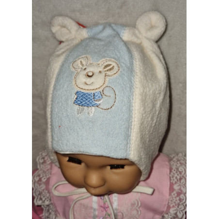 Teplejší čepička, podšitá bavlněnou látkou, zavazování na šňůrky.