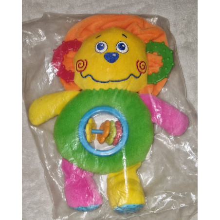 Chrastící - plyšový kamarád s kousátky místo uší a barevnými chrastítky na bříšku.