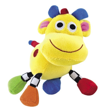 Plyšová hračka s úchytem na zavěšení do kočárku/postýlky stimuluje rozvoj smyslů dítěte. Intenzivní barvy přitahují pozornost dítěte.