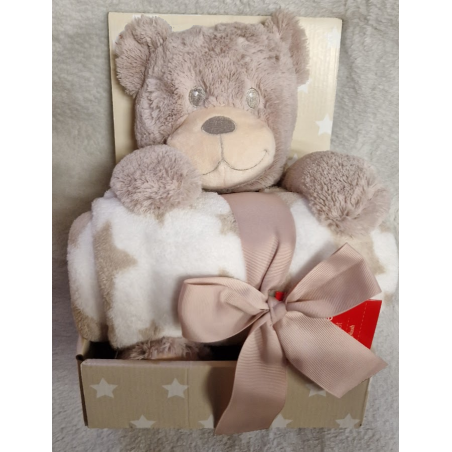 Plyšový kamarád a stejně heboučká deka.