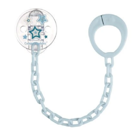 Řetízek obsahuje praktický klip, který umožňuje pevné a stabilní připevnění k oděvu dítěte a chrání šidítko před ušpiněním nebo ztrátou.