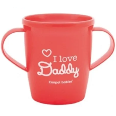 Dětský plastový hrníček o obsahu 250 ml s potiskem "I love Daddy" určený k nácviku pití z klasického "dospěláckého" otevřeného hrnečku - tedy pro poslední fázi nácviku přechodu pití z láhve na klasický hrneček.