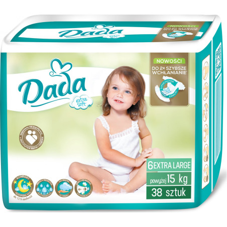 DADA plenky Extra Soft 6 Extra Large jsou určené pro děti o hmotnosti nad 15 kg, jsou perfektní a poskytují až 12 hodinové pohodlí.