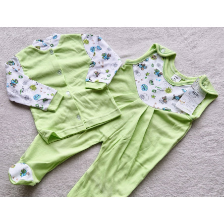 Příjemná, bavlněná, dvojdílná souprava, vel. 80, s drobnými obrázky.