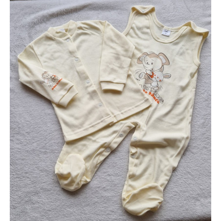Příjemná, bavlněná, dvojdílná souprava, vel. 86, s obrázkem sloníka s hračkou.