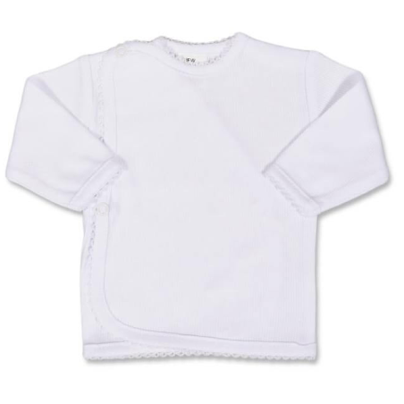 Bílá kojenecká košilka Gama - proužkovaná, velikost 50, je velmi kvalitní, příjemná, kojenecká bavlněná košilka pro miminko, s velmi praktickým drukovým (patentkovým) zapínáním. Bílá kojenecká košilka pro miminko je vyrobena ze 100% bavlny.