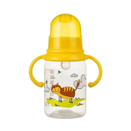 Kojenecká láhev s úchyty typu STANDART 125ml se stadnartním tj. klasickým "úzkým" hrdlem, osazena savičkou s pomalým průtokem - určeným dětem 0m+