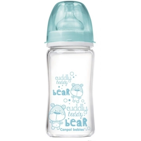 Skleněná antikoliková kojenecká láhev se širokým hrdlem řady EasyStart značky Canpol babies o objemu 240ml, typ PURE GLASS.
