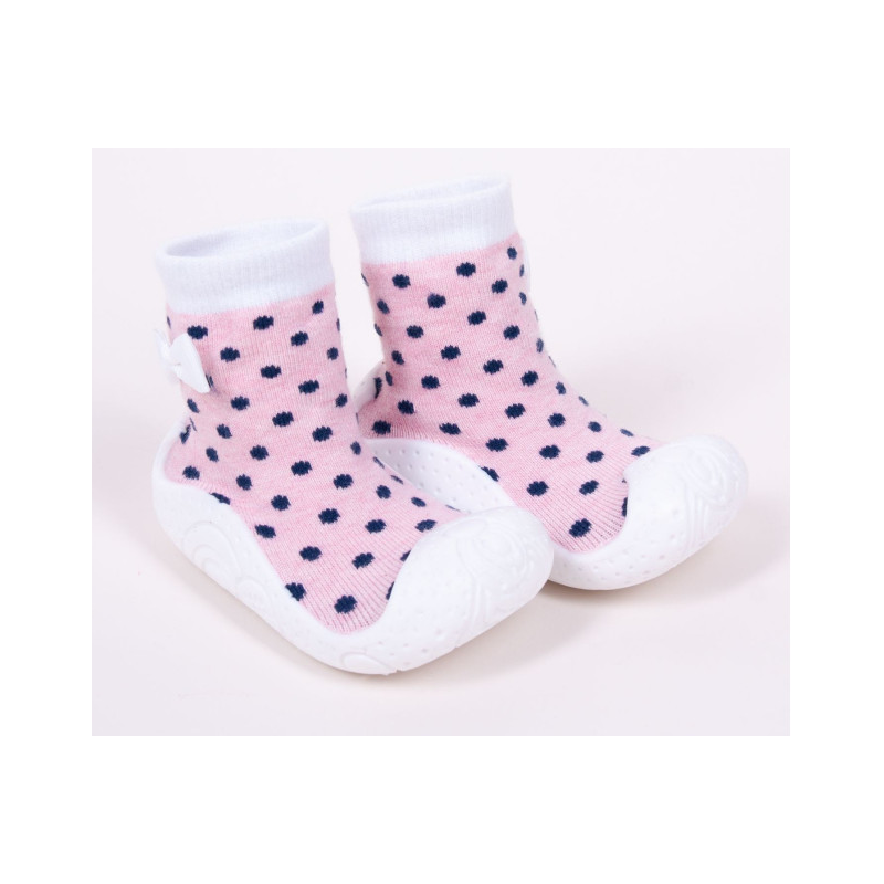 Ponožky s pryžovou podrážkou pro miminka od Yoclub. - gumová podrážka je měkká a elastická, což umožňuje ohýbání chodidel - vpředu je prolamovaná vložka, která zajišťuje lepší cirkulaci vzduchu a činí ponožku vzdušnější