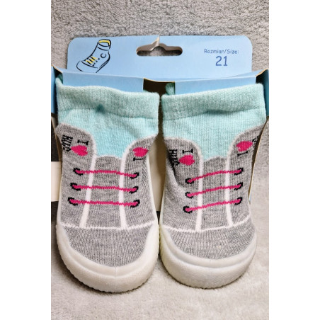Ponožky s pryžovou podrážkou pro miminka od Yoclub. - gumová podrážka je měkká a elastická, což umožňuje ohýbání chodidel - vpředu je prolamovaná vložka, která zajišťuje lepší cirkulaci vzduchu a činí ponožku vzdušnější