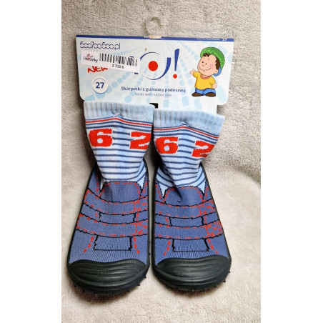 Ponožky s pryžovou podrážkou pro miminka od Yoclub. - gumová podrážka je měkká a elastická, což umožňuje ohýbání chodidel - vpředu je prolamovaná vložka, která zajišťuje lepší cirkulaci vzduchu a činí ponožku vzdušnější