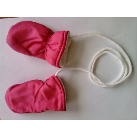 Kojenecké zimní rukavičky na šňůrce. Délka od zápěstí k prstíkům je 8 cm. Celková délka rukavičky je 12 cm.
