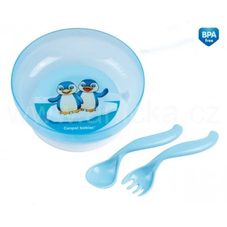 Praktická barevná miska s přísavkou a víčkem umožňuje pevné a stabilní připevnění na desce stolu. Oceníte zejména v době, kdy se dítě učí samo jíst. Víčko chrání pokrm před vychladnutím nebo rozlitím. Miska obsahuje plastový tvarovaný příbor.