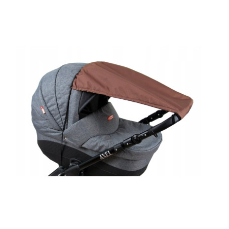 Na hluboké kočárky a sportovní kočárky kdy dítě sedí proti směru jízdy uchytíte stříšku za boudičku a za rukojeť kočárku.