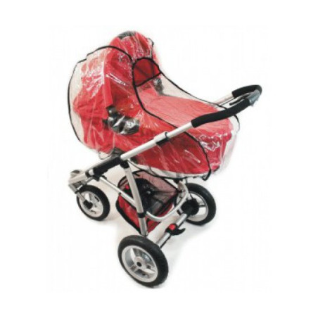 Pláštěnka je pevná, obšitá pružnou légou. Ve přední části boudičky má větrací otvor a současně okýnko na pozorování miminka.