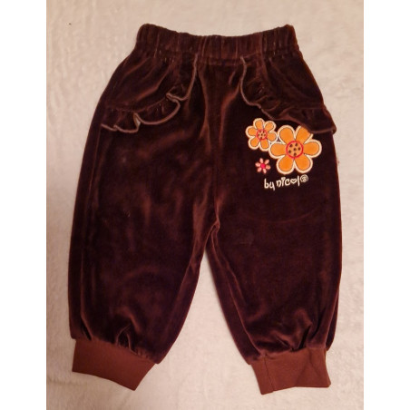 Dětské, teplejší - velurové tepláčky, s volánky a kytičkami.