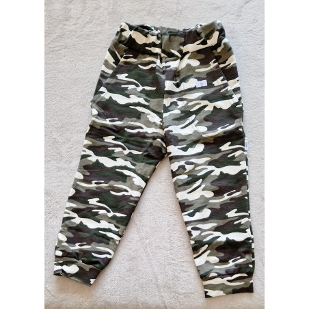 Dětské tepláky s hlubokými kapsami s moderním vzorem. Klasický střih, v pase na gumu. Pohodlné stylové tepláky pro sport i volný čas.