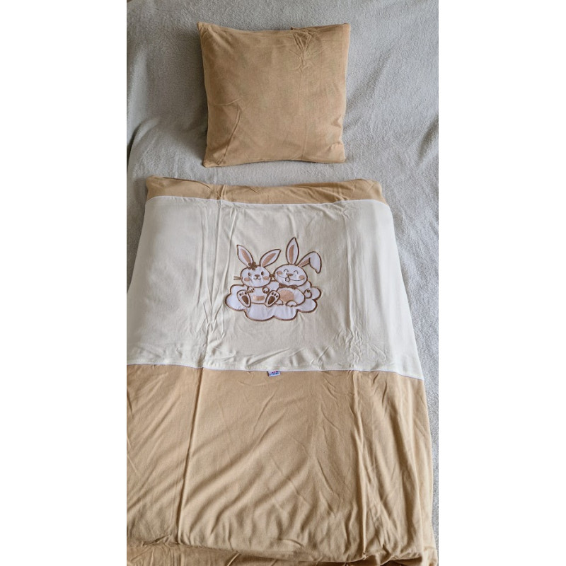 Dětská bavlněná 2-dílná souprava do postýlky New Baby Bunnies. Souprava obsahuje povlečení na polštářek, povlečení na peřinku. Polštář je jednobarevný, peřinka má obrázek zajíčků.