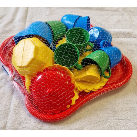Dětská plastová čajová souprava, se kterou si vyhrajete jak v dětské kuchyňce, tak i na pískovišti.