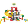Sada obsahuje: systém vnějších garážových cest o celkové délce 2,3 m, 3 patrovou garáž, 2 dětská autíčka, samolepky a dekorace (včetně značek, postaviček stromů, zábran).