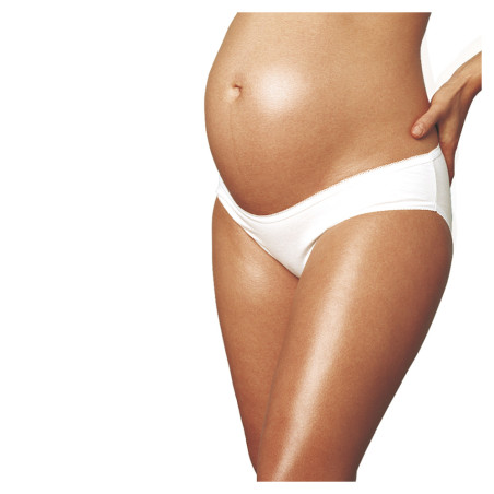 Těhotenské kalhotky nízké pod bříško ve velikosti M. Komfortní střih netlačí na bříško, přizpůsobí se jeho velikosti a zajišťuje pohodlné nošení. Jsou vyrobeny ze 100% bavlny.