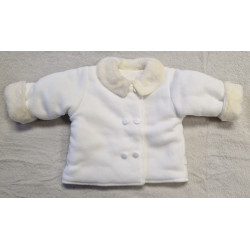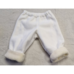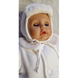 Kabátek, kalhoty i čepička jsou podšité bavlněnou látkou. Okraje rukávů, nohavic, kšilt čepičky a límec jsou z krémové kožešinky. Kabátek má dvouřadé zapínání na knoflíky. Kalhotky jsou v pase na gumu.