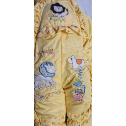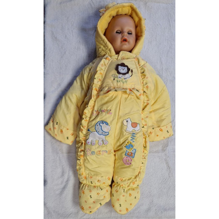 Zimní šusťáková kombinéza vel. 68-70, s veselými - barevnými motivy.